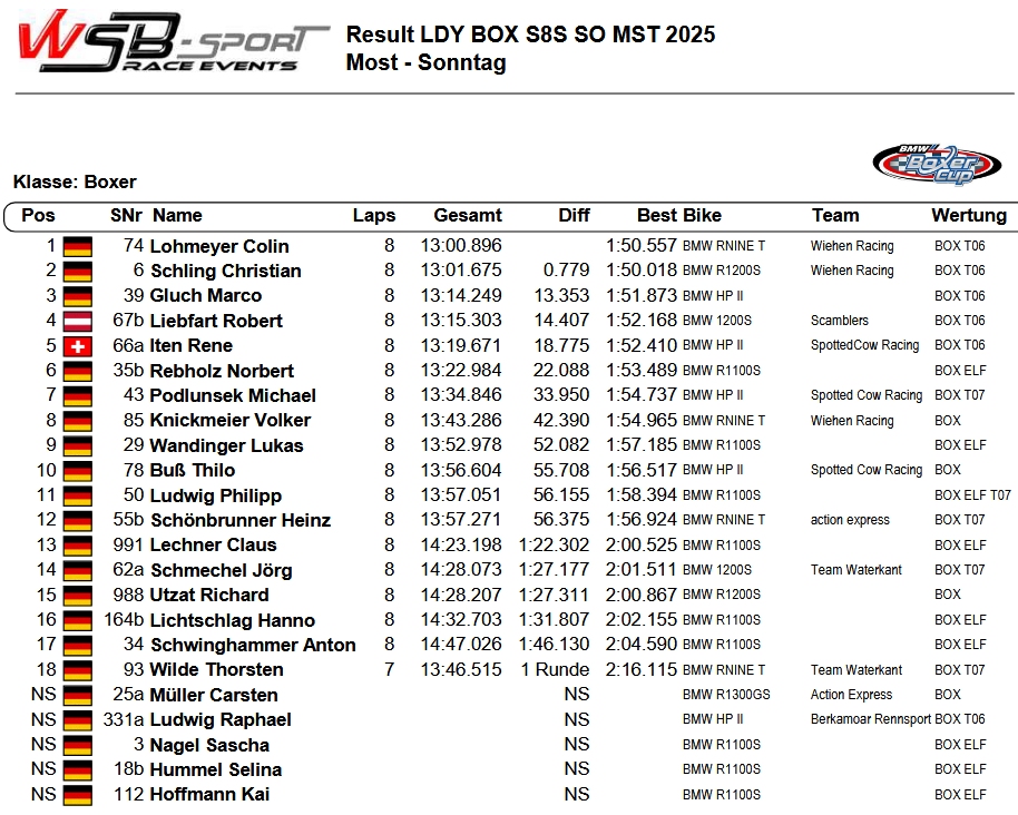 Offizielle Wertung Most 2025 Rennen 2: