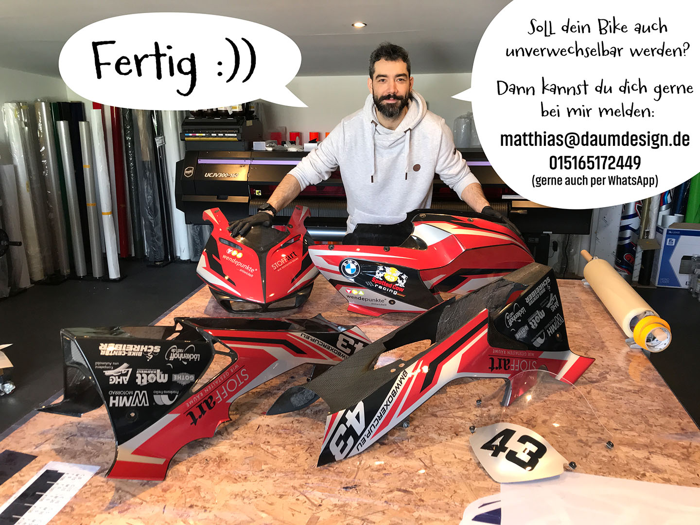 Qualität und Preis Leistung sind wirklich top, auch ist Matthias sehr flexibel, wenn ein weiteres Rennwochenende vor der Tür steht, nochmals eine Sonderschicht einzuschieben.