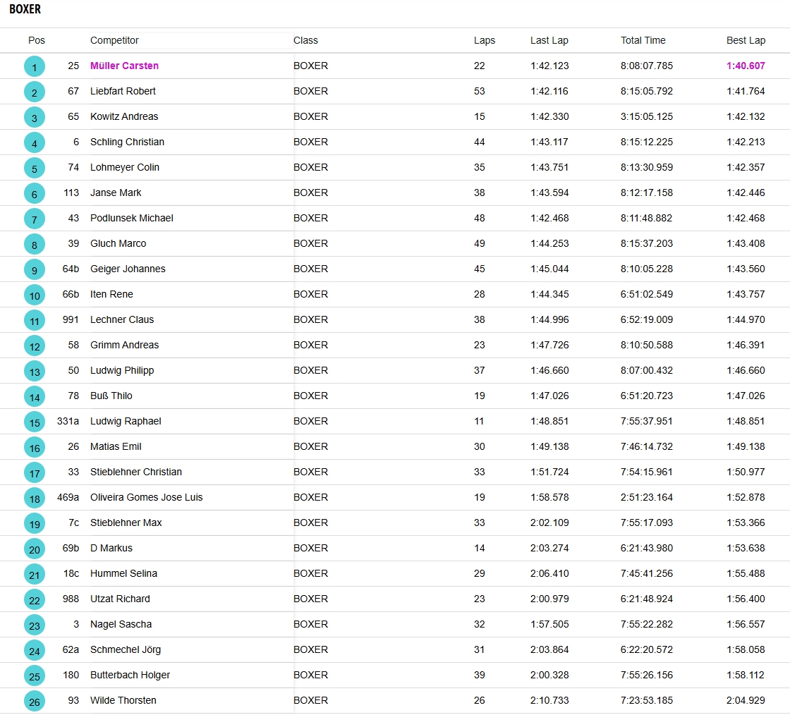 Die Samstag Vormittagszeiten des Boxercups (Zeittraining für Startaufstellung):