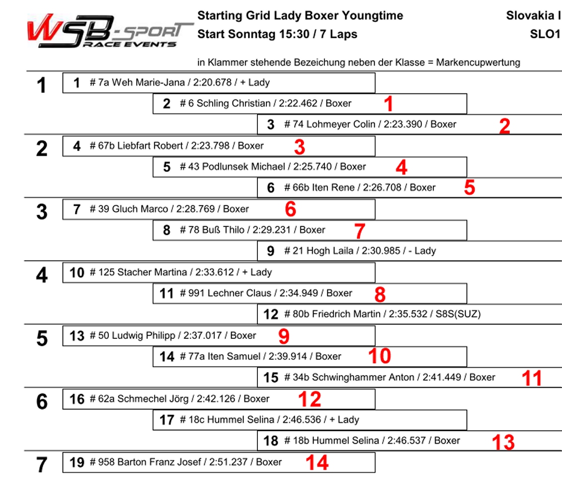 Ergebnisse Meisterschaftsstand 2025 Rennbericht WSB 2025 TeamCup 5000 Sollten sich Fehler eingeschlichen haben, einfach melden. ![]() Für unsere Fans hier im Forum sind Reaktionen und Eindrücke der Teilnehmer ausdrücklich erwünscht! Alle Teilnehmer erhalten einen Link zu ihren persönlichen Fotos nach deren Eintreffen per Mail!