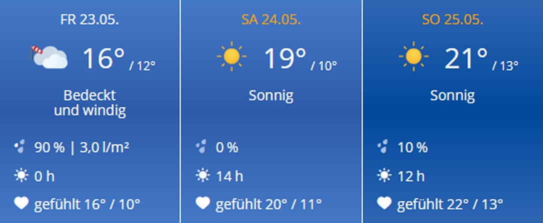 In 2 Wochen ist schon Racetime. So wird das Wetter, oder auch nicht: