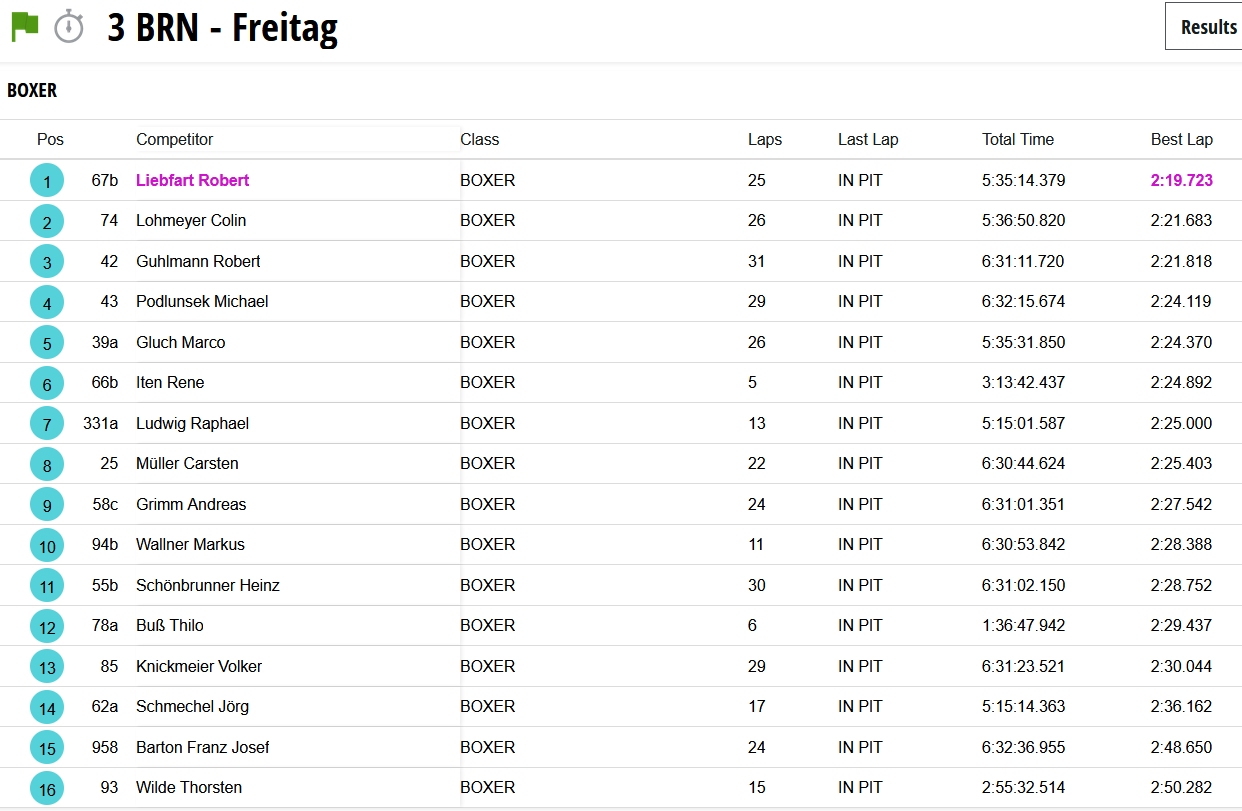 Beim heutigen 2h Langstreckenrennen, Start 15:50, dürften 3 Boxerteams teilnehmen, die Besetzung ist nicht bekannt.