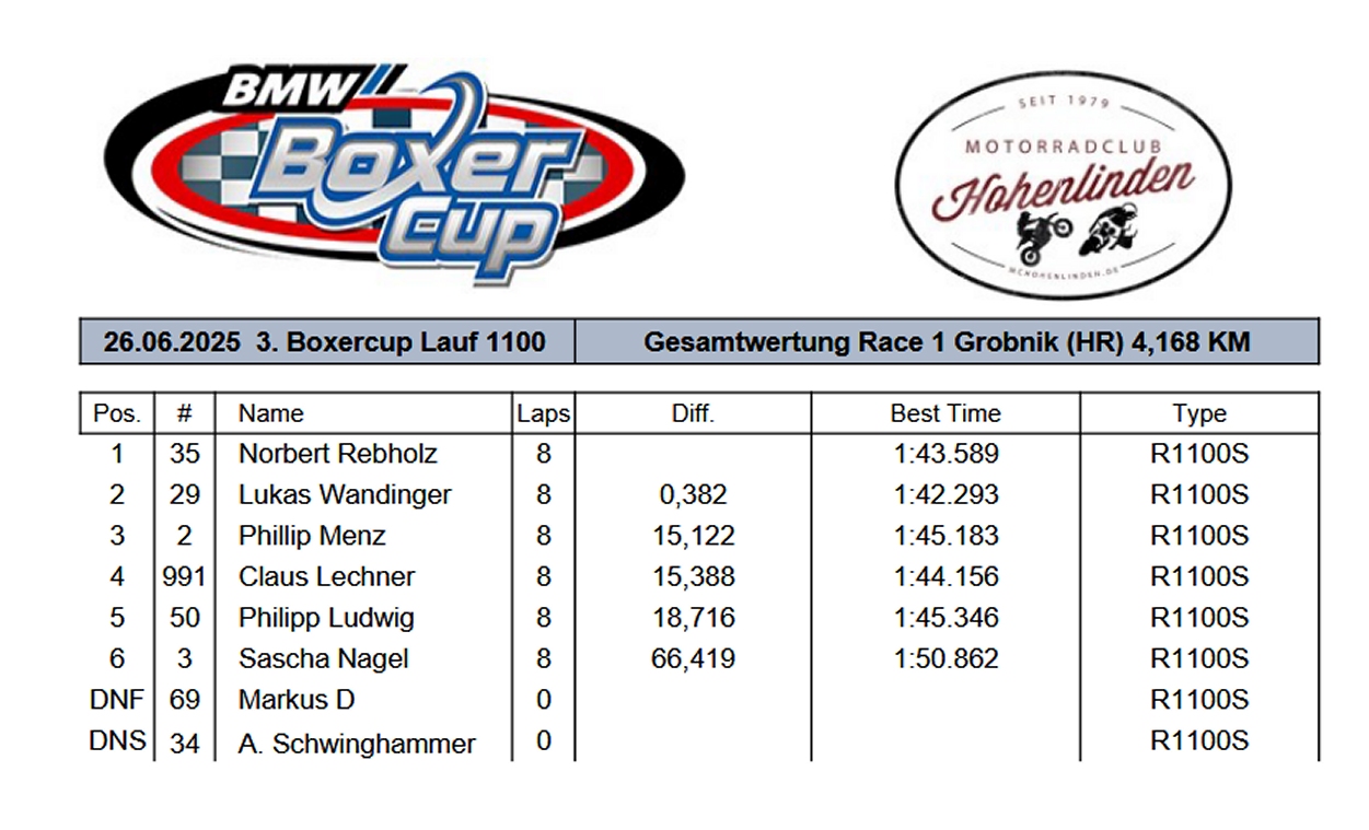 Das R1100S Rennen in Rijeka ist gelaufen, hier das Ergebnis: