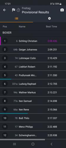 Ergebnis Rennen 2, man beachte die schnellste Rundenzeit!