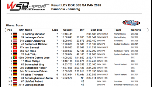 Ergebnisse, Gesamtwertung Pannoniaring 2025: