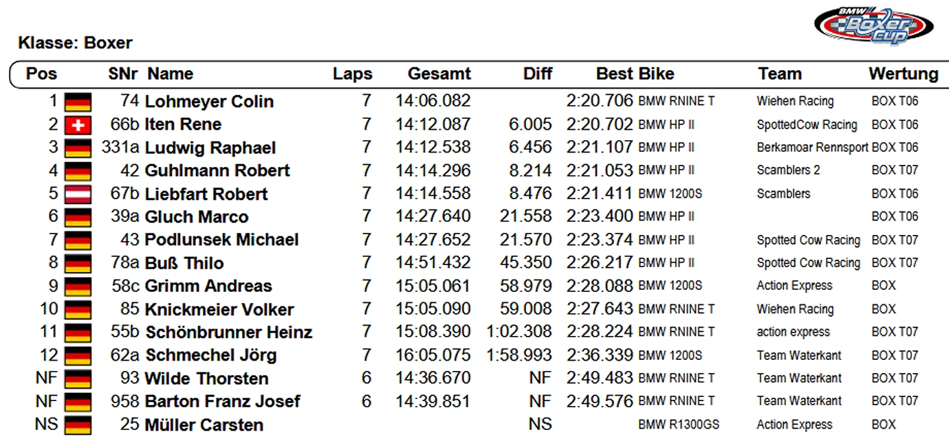 RE: RE: BC 13. - 15. Juni 2025 Brünn R2 - Wob - 15.06.2025 Das offizielle Ergebnis Rennen 2 Brünn 2025: Zum Vergrößern klicken RE: RE: BC 13. - 15. Juni 2025 Brünn Sieger - Wob - 15.06.2025 Die Sieger in Brünn: Zum Vergrößern klicken Rennen 1 Zum Vergrößern klicken Rennen 2 RE: RE: BC 13. - 15. Juni 2025 Brünn - Wob - 15.06.2025 Ergebnisse, Gesamtwertung Brünn 2025: Ergebnisse Brünn Meisterschaftsstand 2025 Rennbericht WSB 2025 TeamCup 5000 Sollten sich Fehler eingeschlichen haben, einfach melden. ![]() Für unsere Fans hier im Forum sind Reaktionen und Eindrücke der Teilnehmer ausdrücklich erwünscht! Alle Teilnehmer erhalten einen Link zu ihren persönlichen Fotos nach deren Eintreffen per Mail!