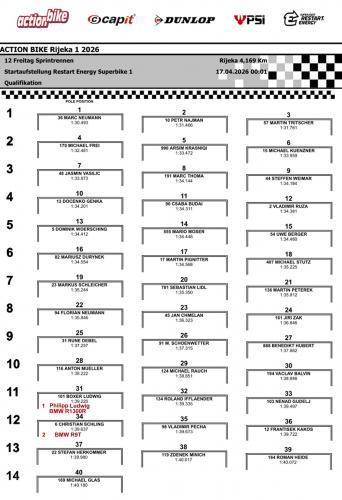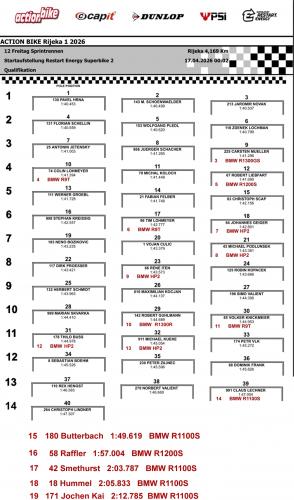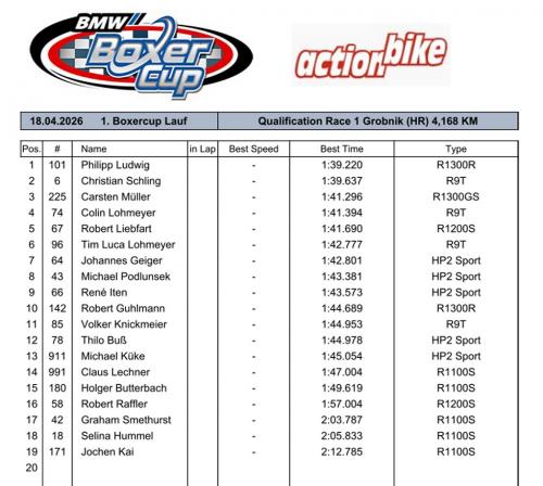 Hier die Freitag Qualizeiten für die SBK Rennen. Ob die Boxer teilnehmen ist nicht bekannt, die Boxercuprennen sind