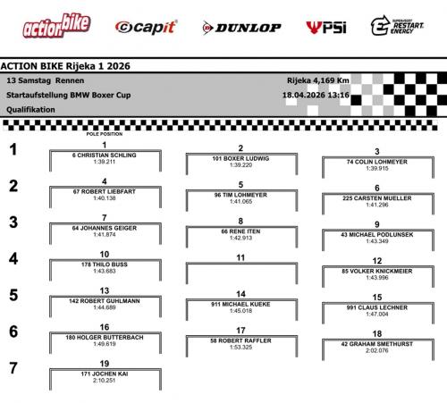 Hier die Freitag Qualizeiten für die SBK Rennen. Ob die Boxer teilnehmen ist nicht bekannt, die Boxercuprennen sind