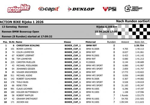 Das Ergebnis Rennen 1:
