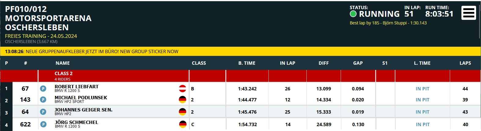 Hallo in die Runde der Oschersleben - Fahrer.