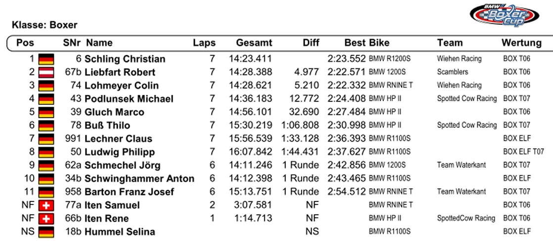 Beim Langstreckenrennen konnte ich 3 Boxerteams erkennen, wer wo gefahren ist, ist mangels Info von der Strecke nicht bekannt.