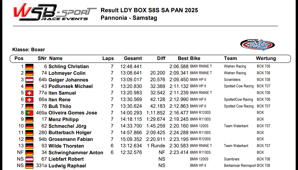 Endstand R1100S Boxercup Classic Meisterschaft 2025