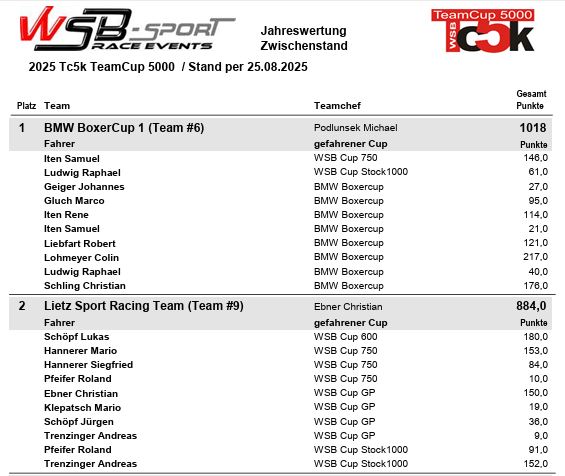 WSB Team Cup 5000 Wertung