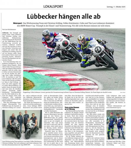 Auch das Siegerteam WiehenRacing ist in der Lokalpresse vertreten: